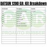 Fits Datsun 1200 GX 2 Door