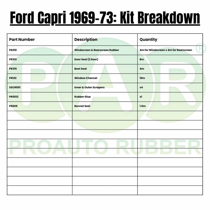This rubber sealing kit is a need for all classic car enthuisiasts. Our kits are designed to provided a perfect fit for various classics. This rubber kit incudes high-quality, durable seals for windows, doors, boots and more. The seals prevent leaks, reduce noise and enhance the overall integrity of your car, ensuring a smoother and more comfortable ride. These kits are easy to install and ensure a nice, clean finish to you car!