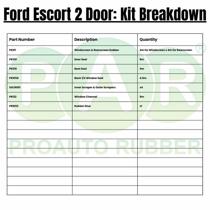 Rubber Kit For Ford Escort Mk1 & Mk2 2 Door