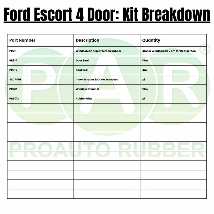 Fits Ford Escort 4 Door